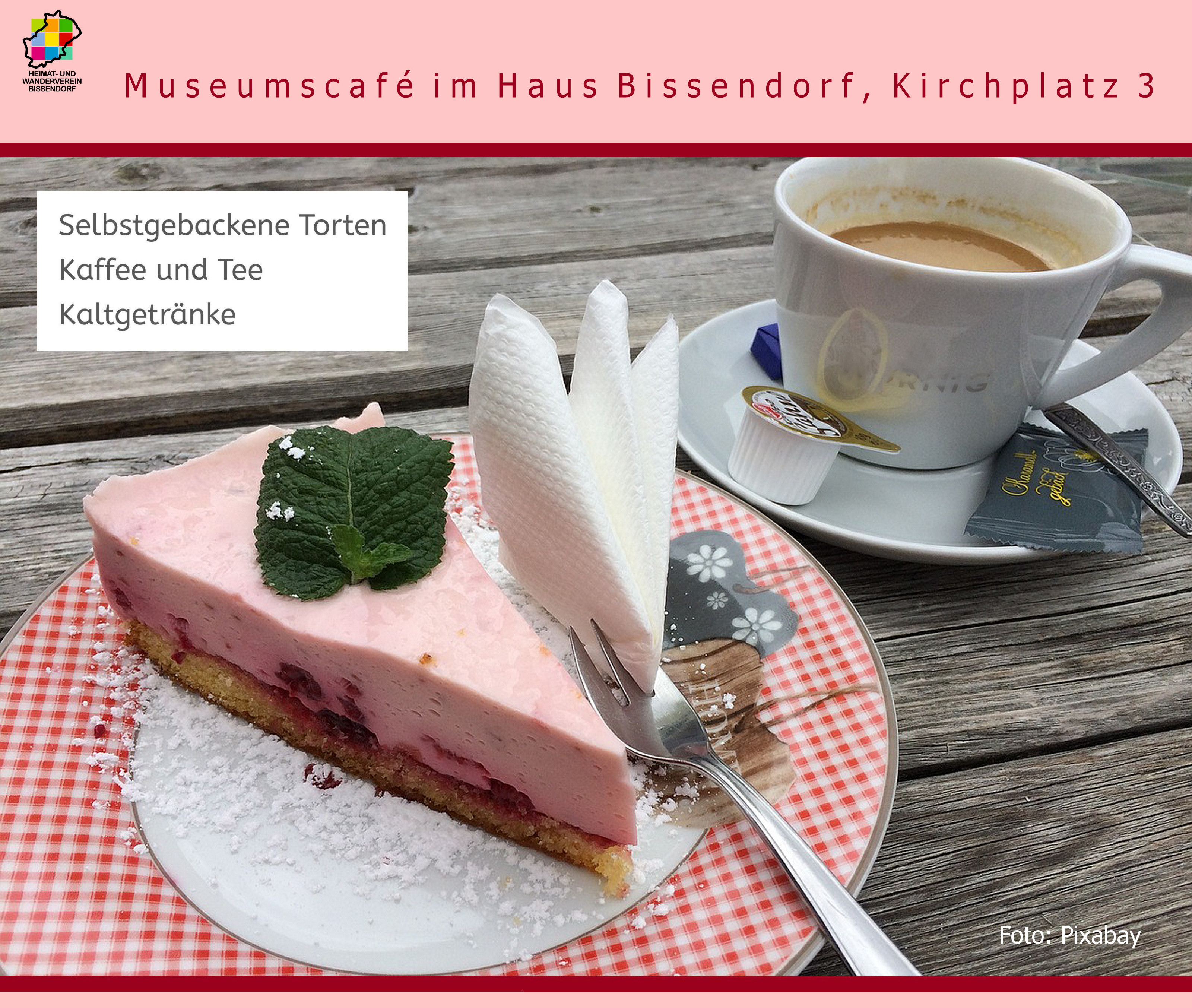 Zusammen mit dem Museum öffnet grundsätzlich auch das Café, jeweils von 15-17 Uhr.